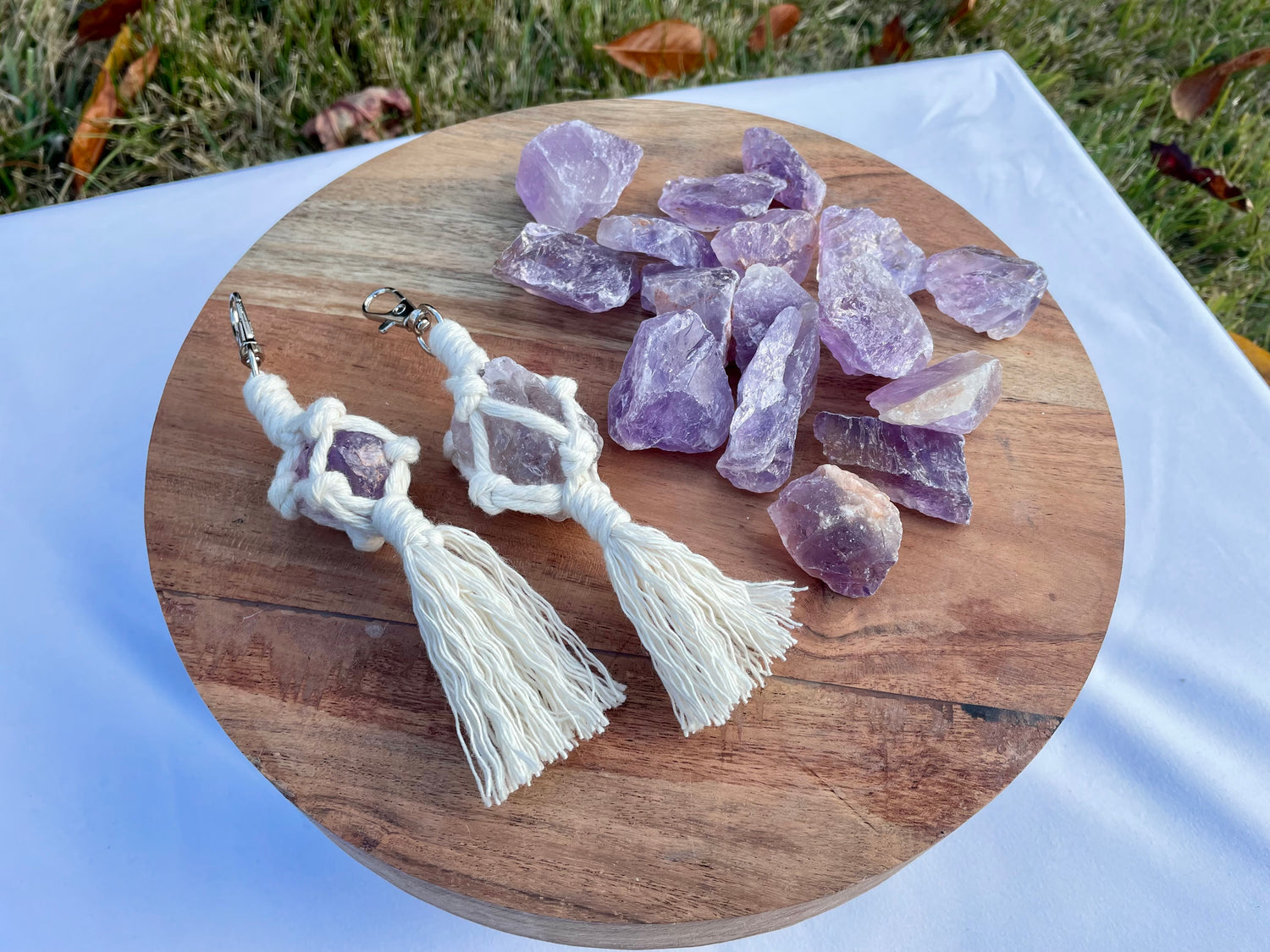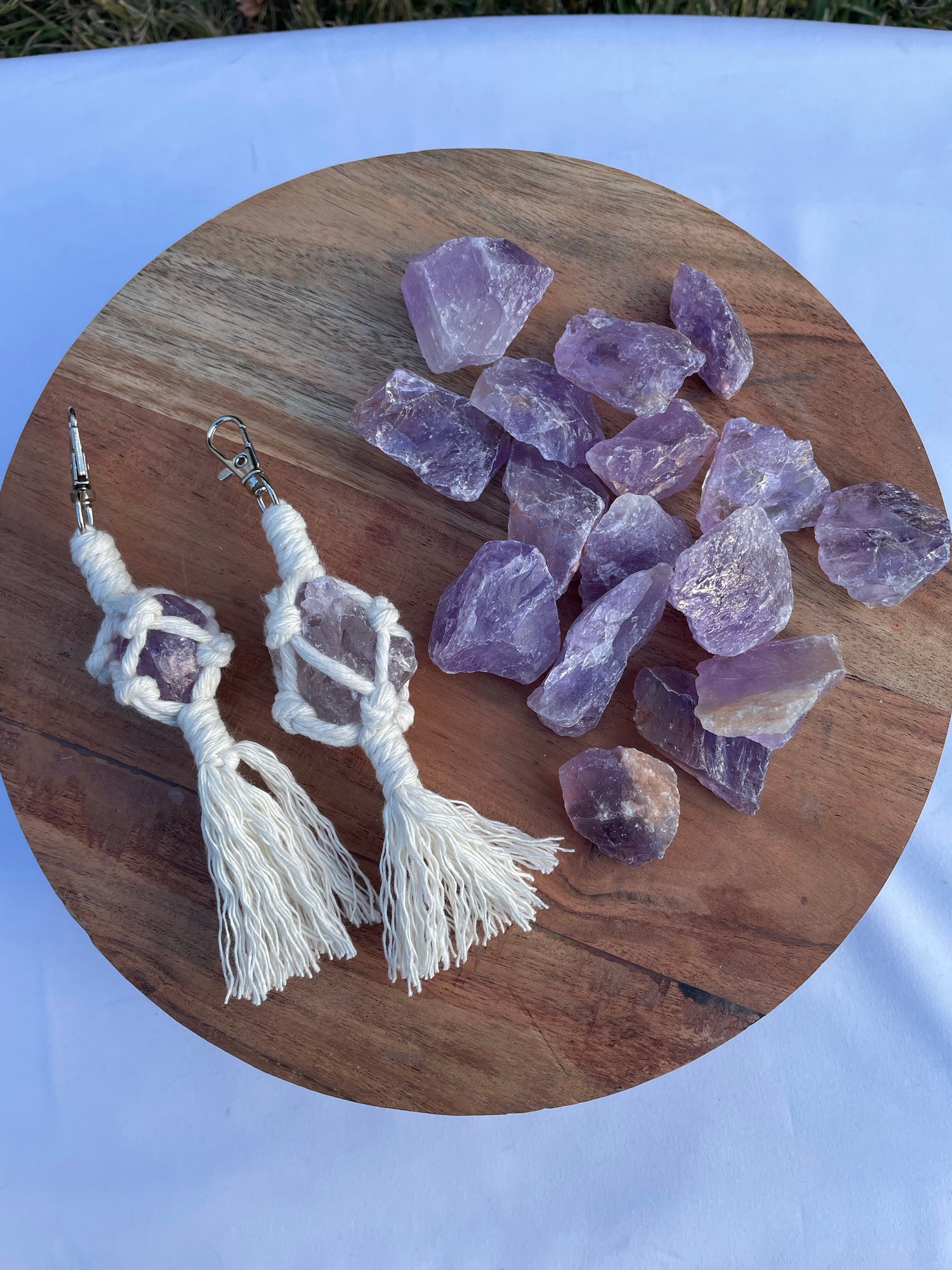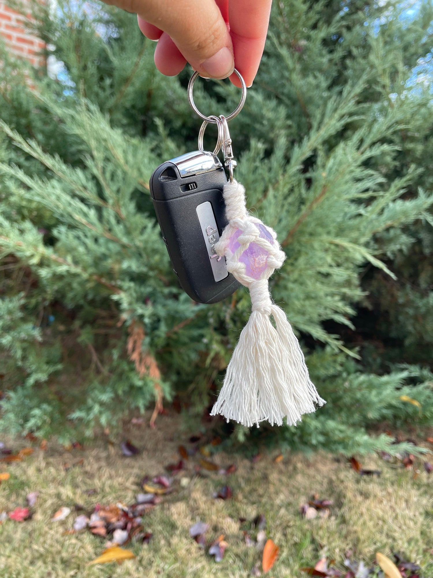 Amethyst Crystal Macrame Keychain
