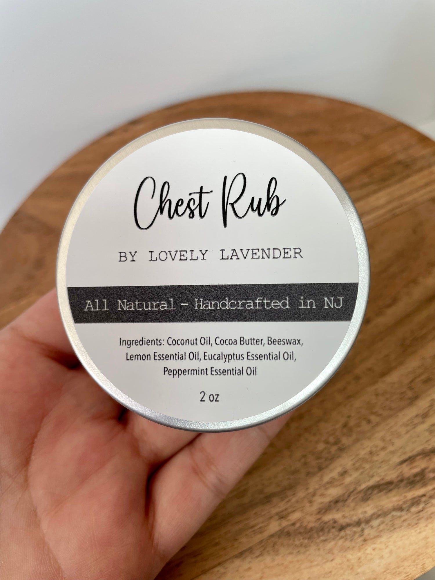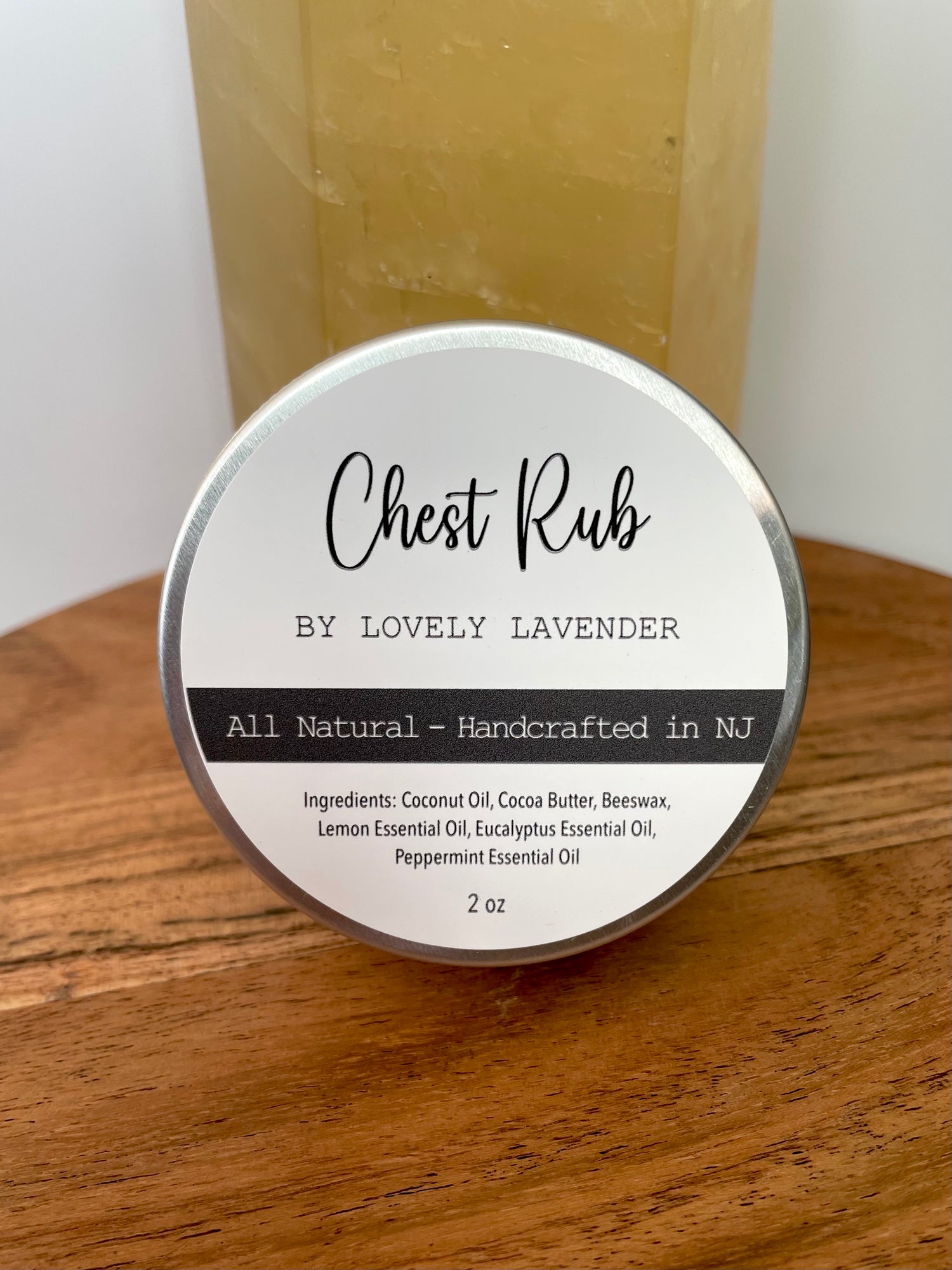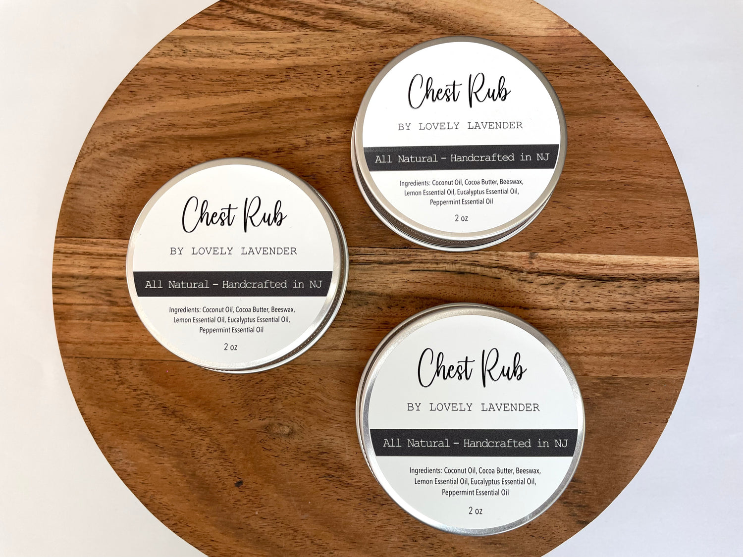 Our Chest Rub is made with Eucalyptus, Peppermint, and Lemon essential oils. Check out our “Breathe Easy” essential oil mist for a longer lasting scent for your home and linens! Here are the benefits of our ingredients: