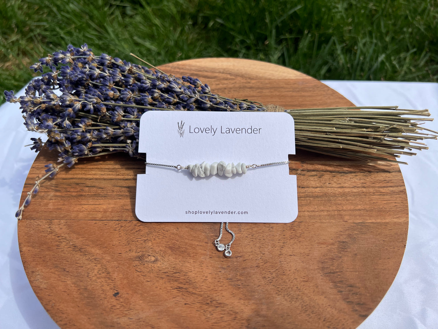 Crystal properties: White Howlite calms an overactive mind. It encourages emotional expression and assists in the elimination of pain, stress, & anger therefore inspiring patience and easing sleep patterns. Chakra: third eye, crown