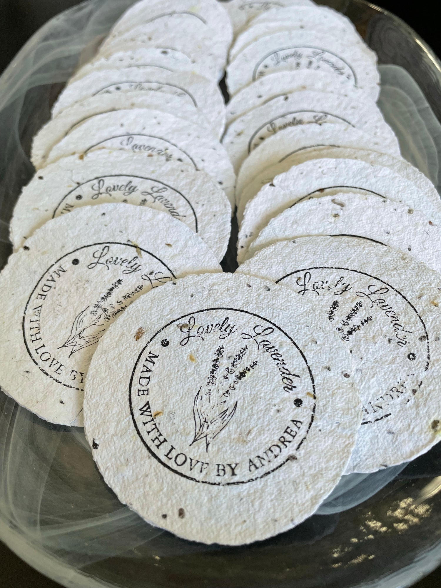 In an effort to reuse, we have recycled all of our paper scraps and created handmade seed paper. Each candle will come with a wildflower seed paper to plant in your vessel or tin once you have finished your candle. The paper is compostable, so it leaves no waste behind when planted.